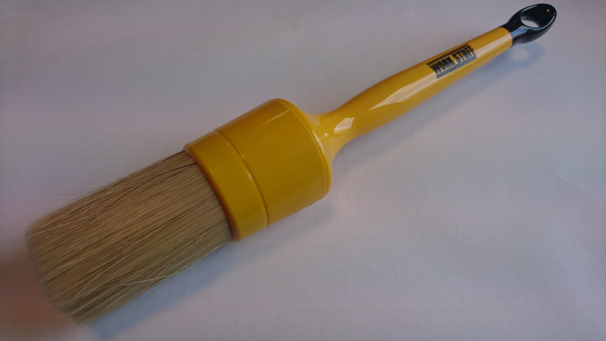 Najbardziej uniwersalny pędzelek w ofercie. Świetnie sprawdza się podczas czyszczenia felg oraz w trakcie wykonywania prewashu. Z powodzeniem może być wykorzystany przy pracach wewnątrz samochodu. Trzonek pędzelka został wykonany z polakierowanego plastiku. Włosie stworzone z połączenia naturalnych oraz syntetycznych materiałów. Pędzelek w dużym stopniu wchłania chemię dzięki czemu możemy rozprowadzić większą ilość produktu na danym elemencie.